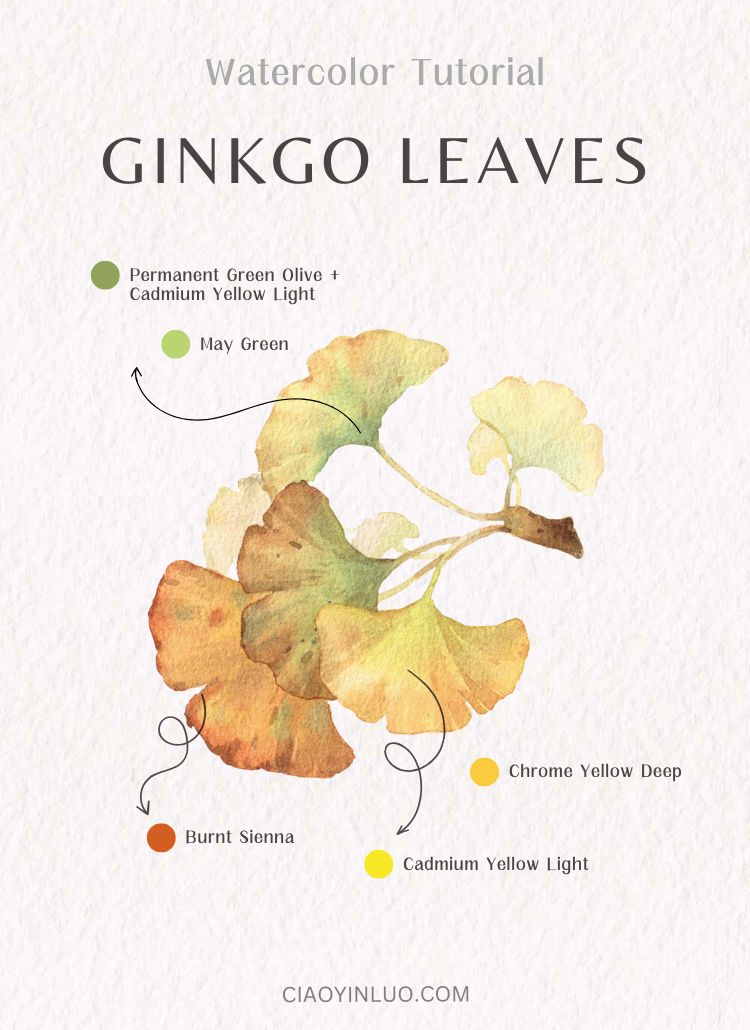Learn how to paint watercolor Ginkgo Leaf |Fall Watercolor Ideas