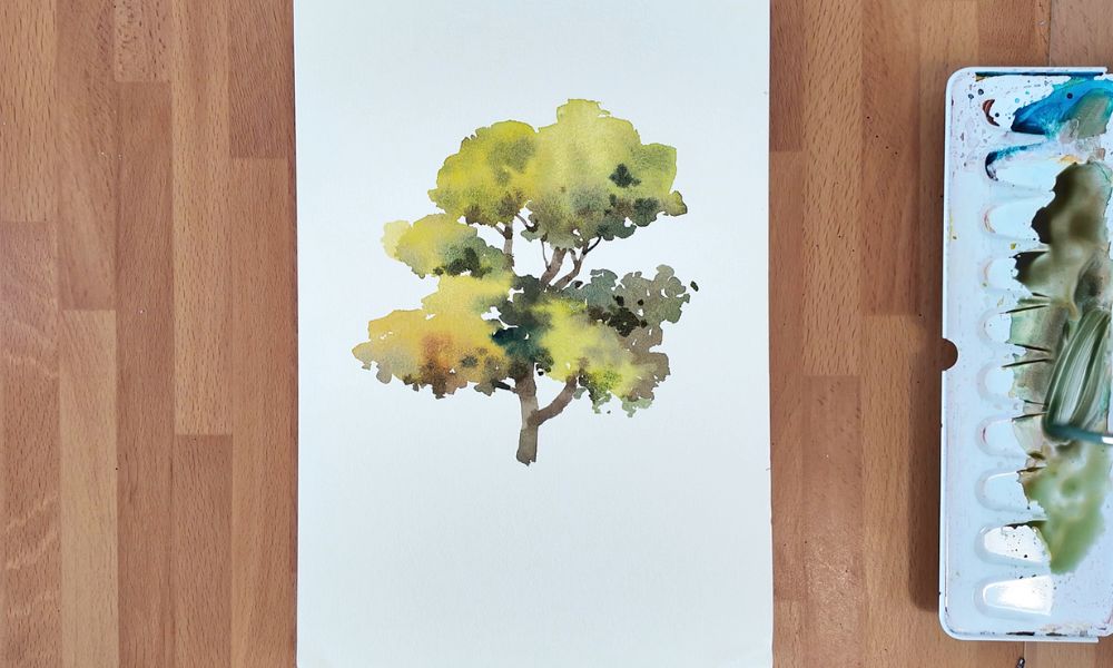 在這篇教學中,我將帶你一步步用水彩畫出四種不同色調的秋天樹木— 從金黃到深酒紅,探索色彩的層次變化與適合樹木的筆觸。